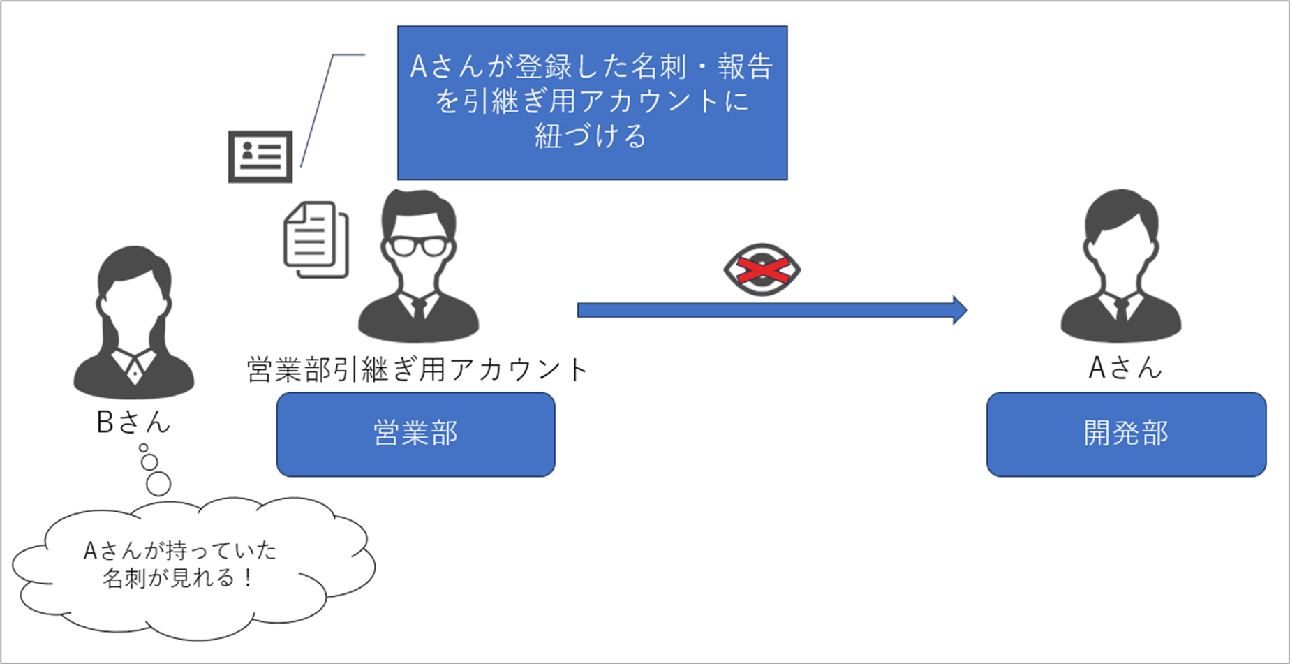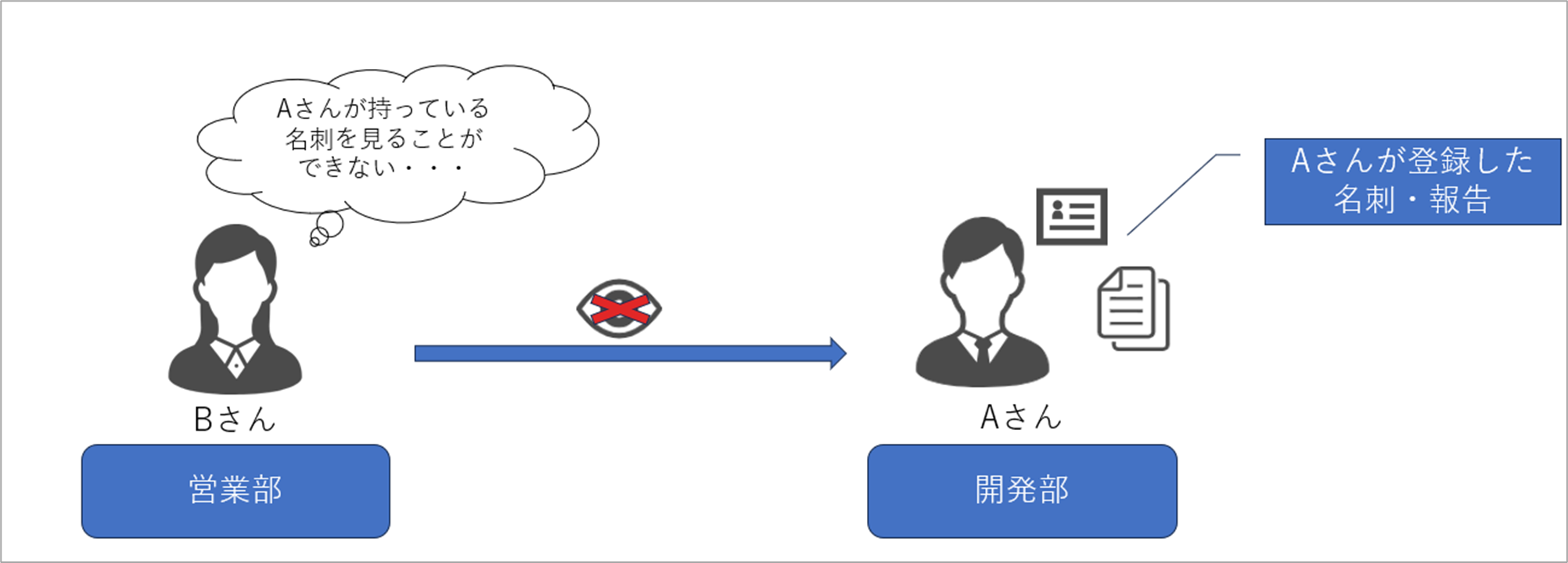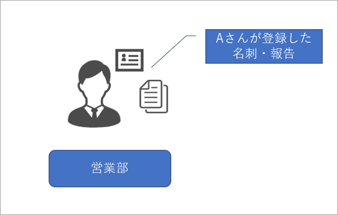Aさんが営業部時代に取得した名刺は、営業部の人たちから見れなくなってしまいます。
