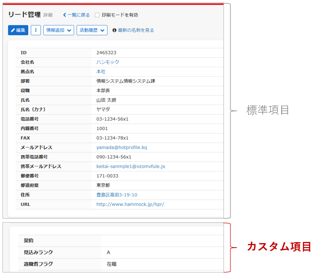 ホットプロファイルに登録されたリード情報(人物情報)や会社情報を統合することができます。
