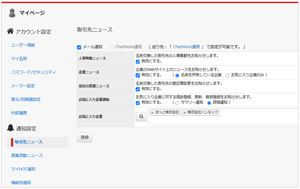 マイページから各種設定変更を行っていただけます。