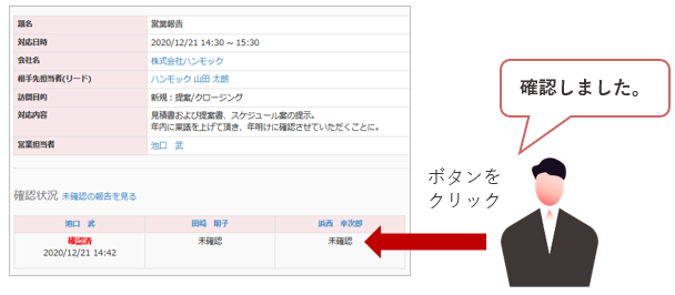 報告管理の表示テンプレートには「確認者」の項目を追加することをおすすめします。