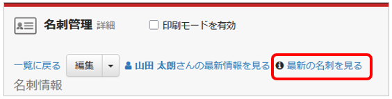 ご自身が持っている名刺が最新名刺ではない場合は、[ 最新の名刺を見る ] というリンクが表示されます。