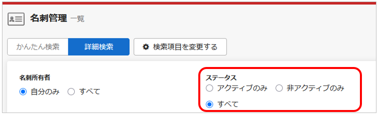 詳細検索では「アクティブのみ」「非アクティブのみ」「すべて」から検索条件を選択いただけます。