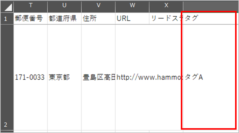 4. エクスポートしたCSVファイルの「タグ列」に、追加したいタグ名を入力して保存します。