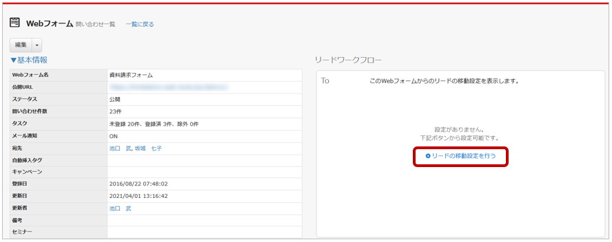 [ リードの移動設定を行う ] ボタンをクリックします。