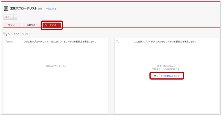 2. [ ワークフロー ] タブをクリックし、[ リードワークフロー ] 枠内の
