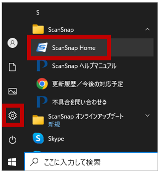 - [ スタート ] - [ 設定 ] - [ ScanSnap Home ] をクリックし、ScanSnap Home画面 を起動します。