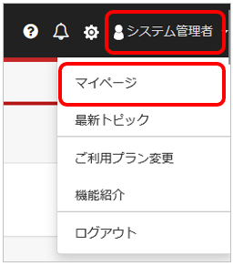 1. 画面右上 [ ユーザー名 ] - [ マイページ ] をクリックします。