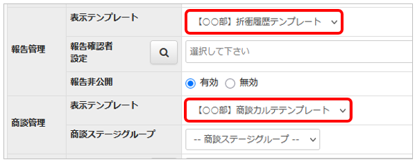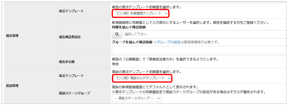 報告や商談を作成する際、都度利用したいテンプレートに変更しなければならず手間になっているため、