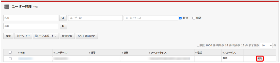 2. 該当のユーザーの [ 編集 ] ボタンをクリックします。