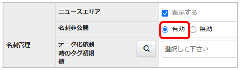 3. 「名刺非公開」の項目にて [ 有効 ] にチェックを入れます。
